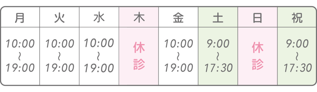 ※初回はカルテの記入があるため10分前にお越しください。